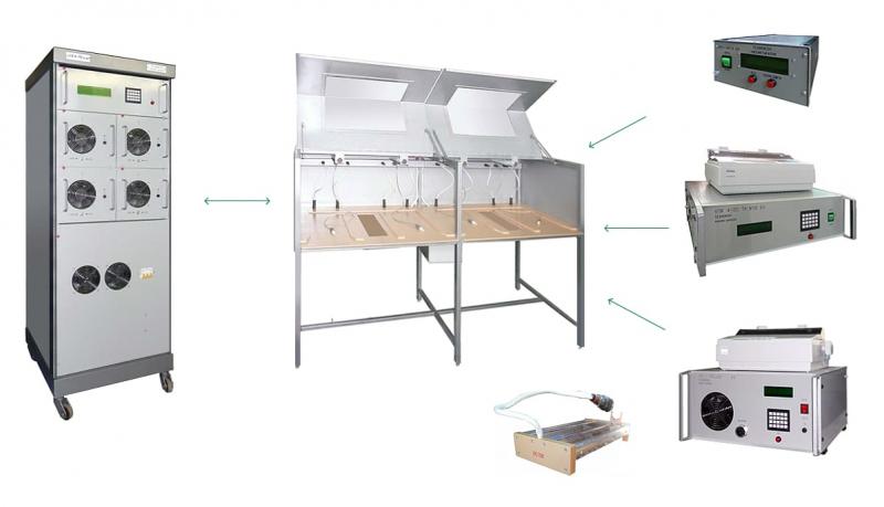 Также производит дополнительное оборудование: • Устройства мойки и сушки батарей; • Устройства приготовления электролита; • Установки приготовления дистиллированной воды; • Тележки и стеллажи для хранения авиационных аккумуляторных батарей